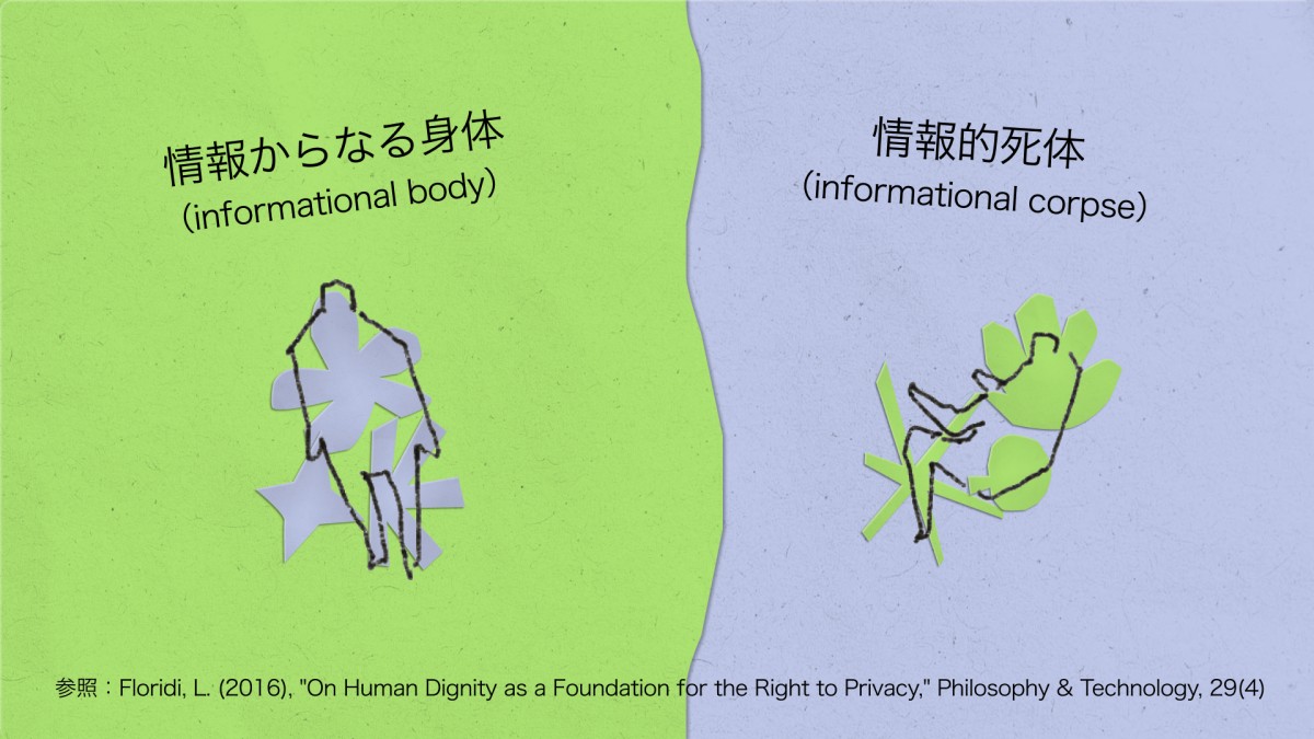 エーマンとフロリディはここからさらに踏み込む。人間が情報によって構成された身体であるなら、死後に残されたデータは故人の「情報的死体(informational corpse)」ということになる[26]。有機的な身体が死後に遺体となるように、情報的身体は情報的死体になる。有機的な遺体に尊厳が必要であるのと同様に、情報的死体もまた尊厳を要求する。